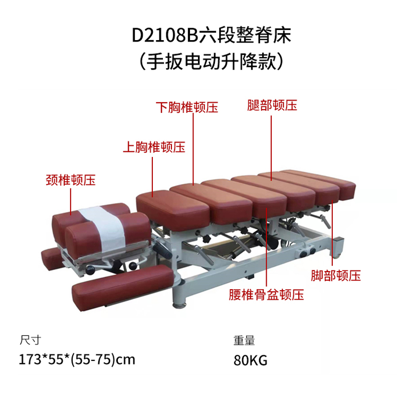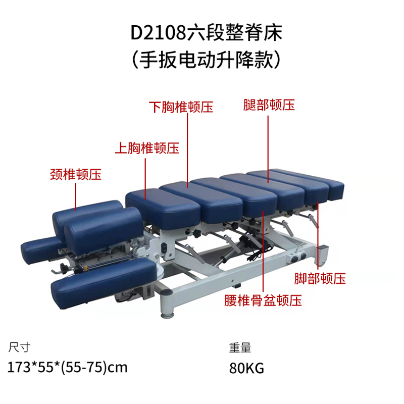 D2108B六段整脊床(手扳电动升降款)